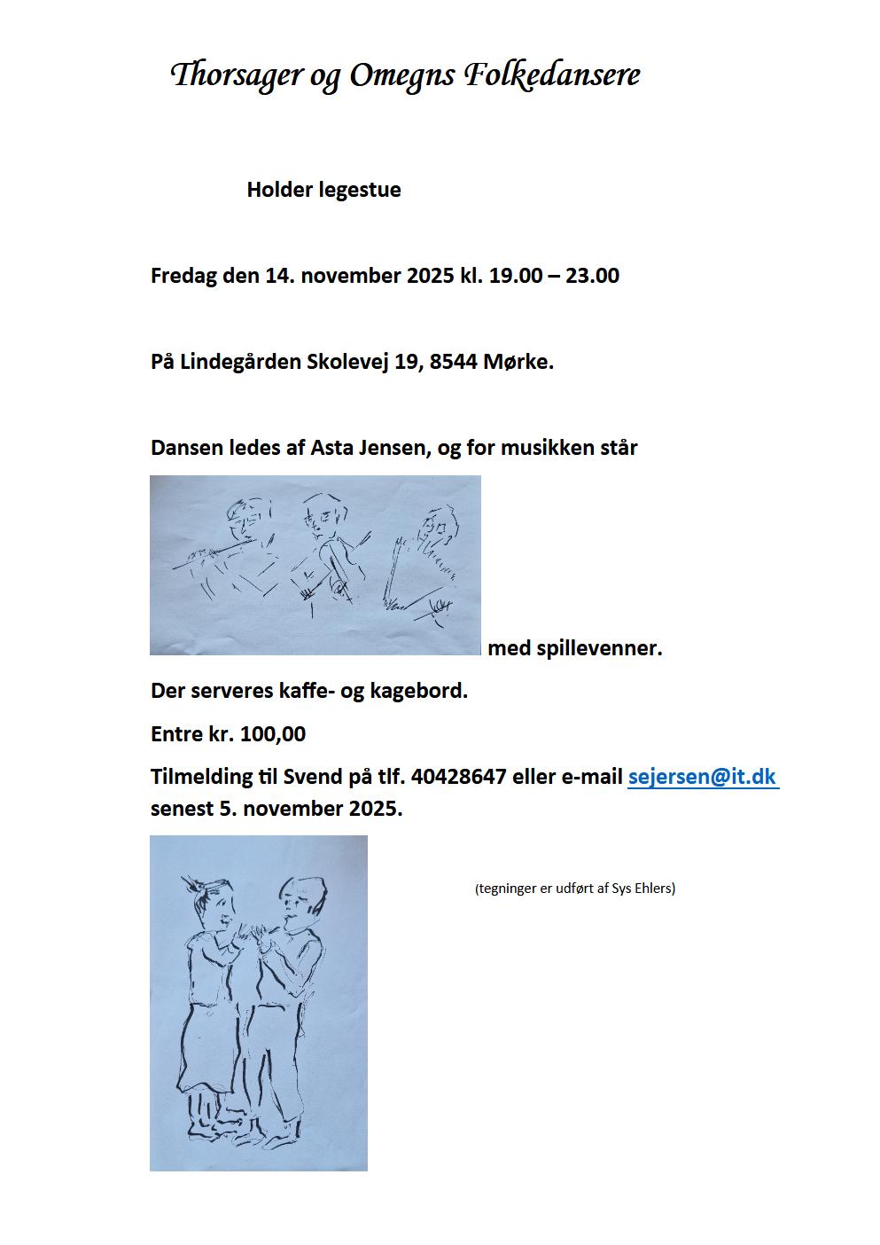 Foreningens danseaftener er på Lindegården , Skolevej 19, 8544 Mørke
