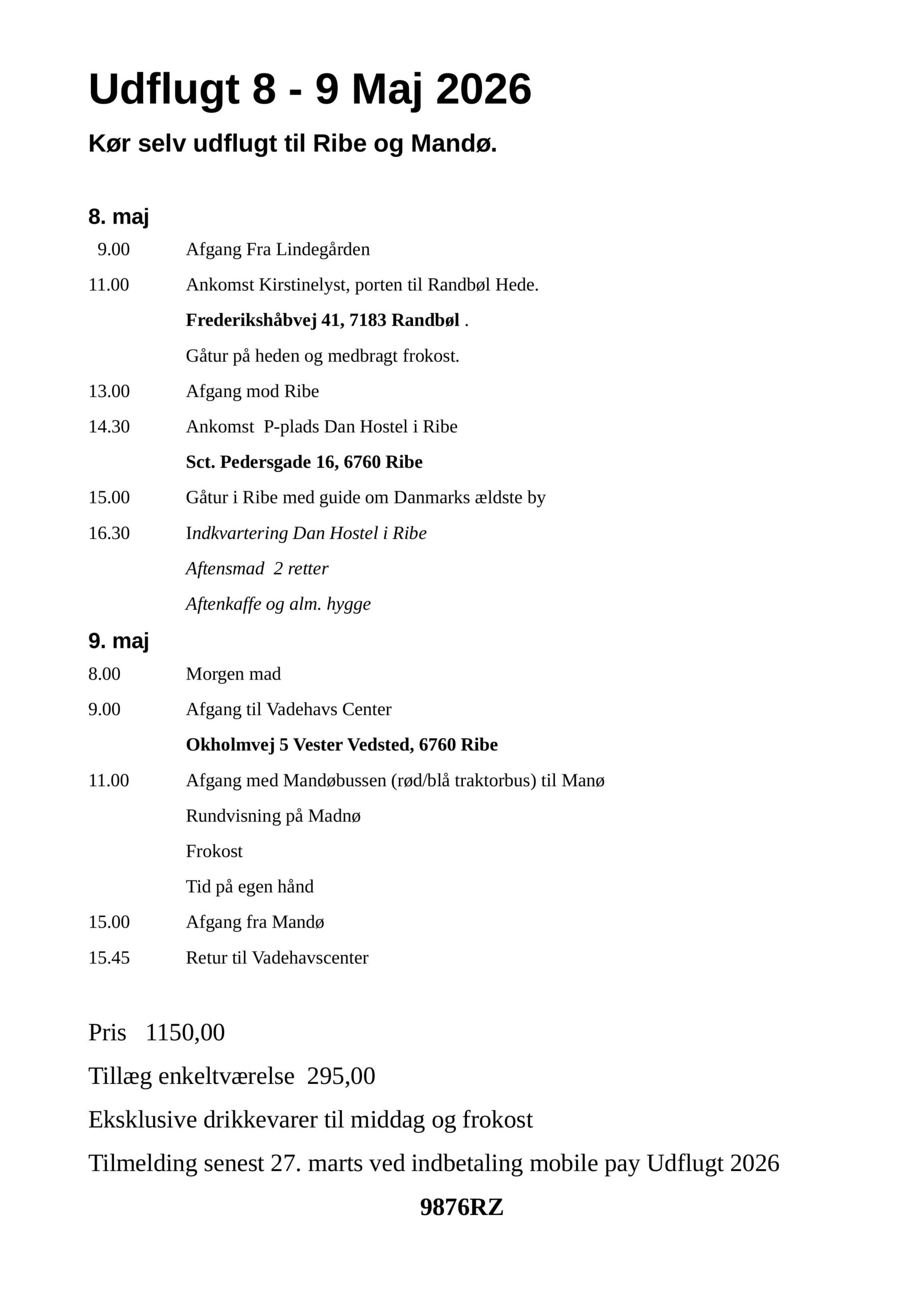 Udflugt til Ribe/Manø
